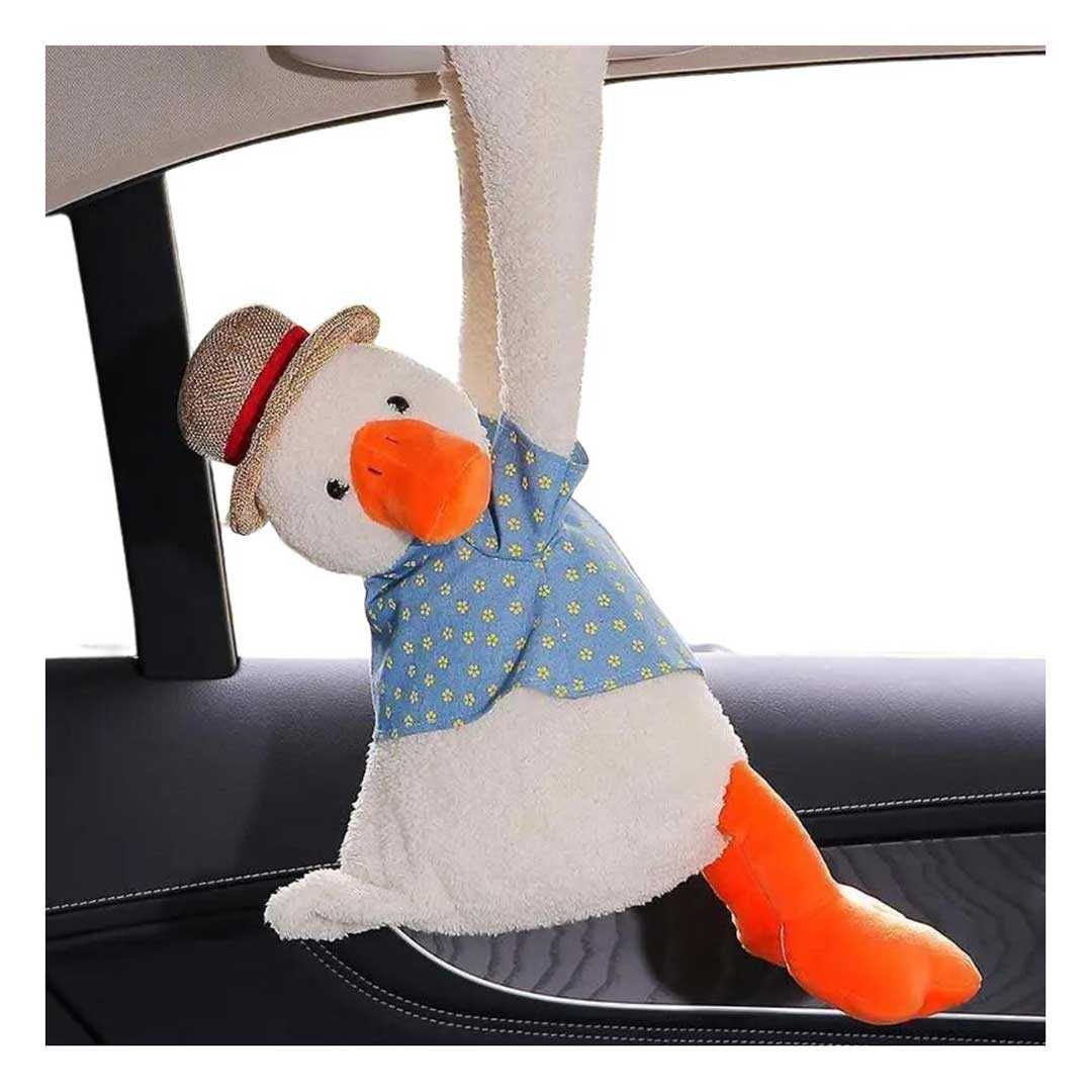 ヘッドレストに通すだけで簡単取り付けできる可愛いアヒルのティッシュケースです。