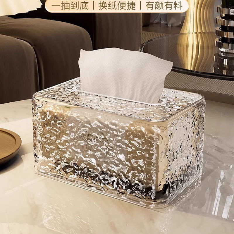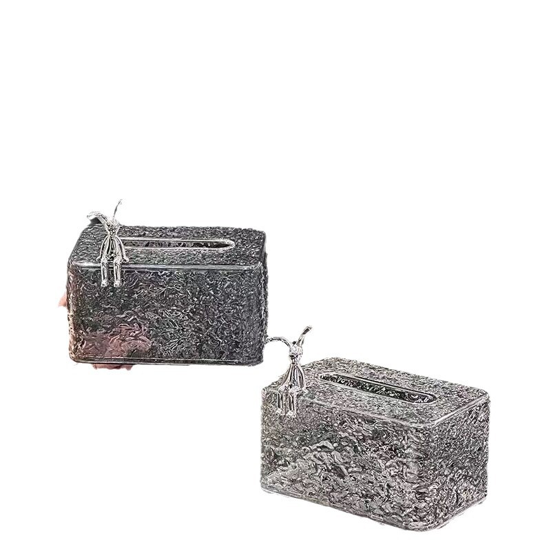 氷の結晶を思わせる美しい凹凸模様が特徴的なガラス製のティッシュケースです。