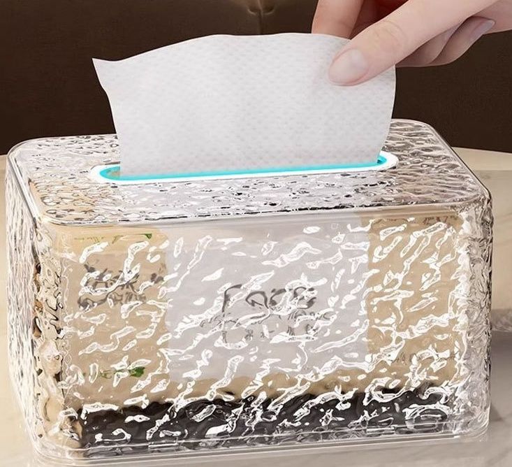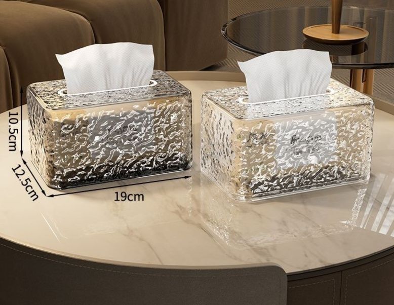 サイズは幅19センチ、奥行12.5センチ、高さ10.5センチで、標準的なティッシュボックスに対応しています。