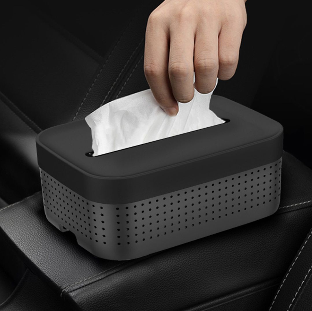 滑り止め機能付きで走行中もずれにくく、片手でスムーズにティッシュを取り出せます。