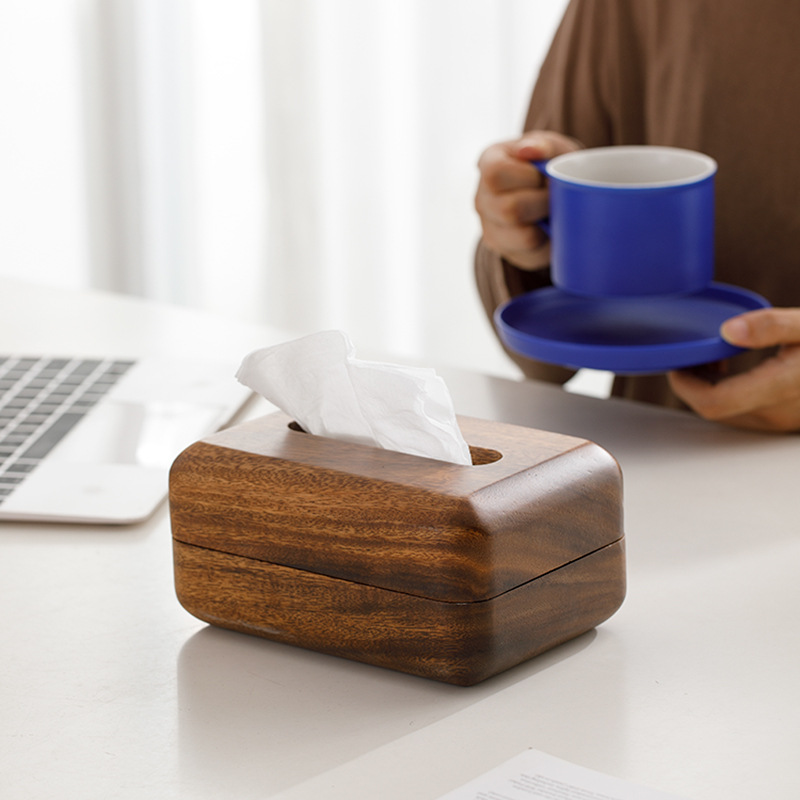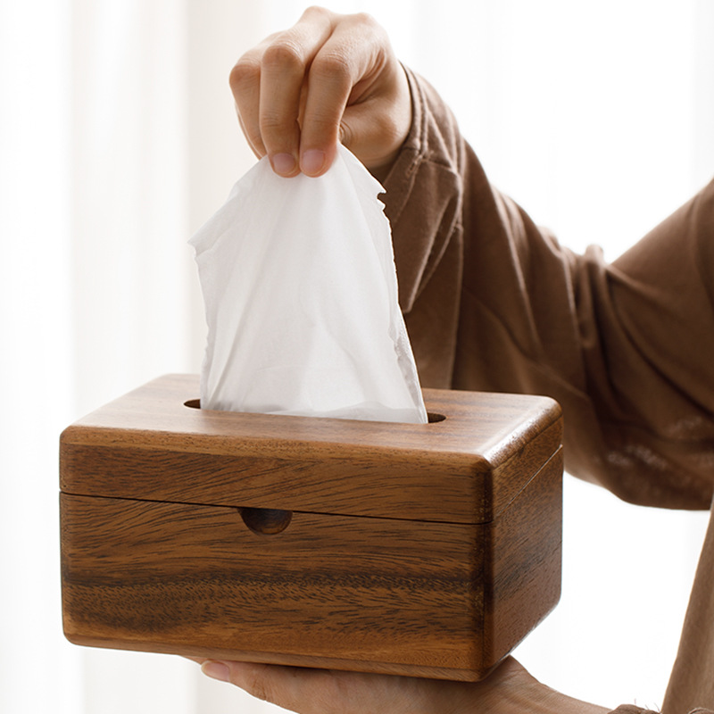 天然木の美しい木目を活かした木製ティッシュケースです。