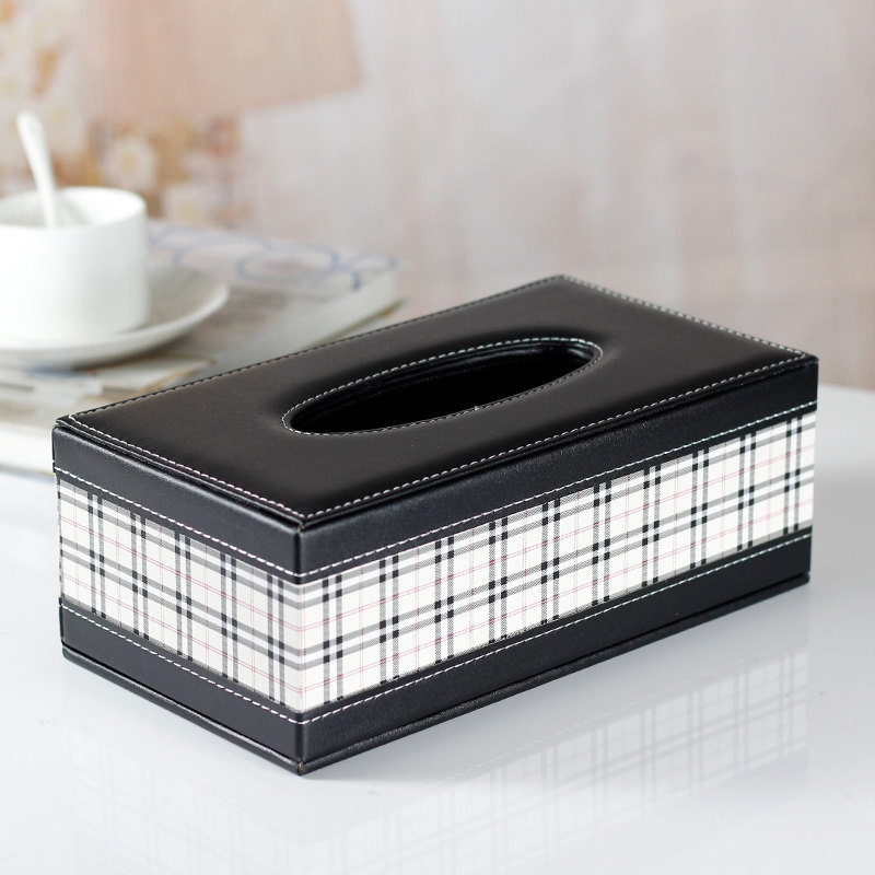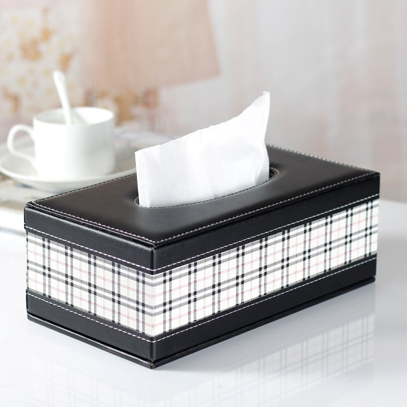 上質なレザー素材に格子柄をあしらった、洗練されたデザインのティッシュケースです。