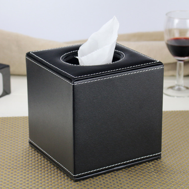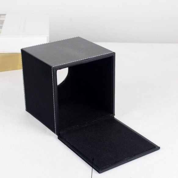 高級感あふれるレザー素材を使用したキューブ型のティッシュケースです。