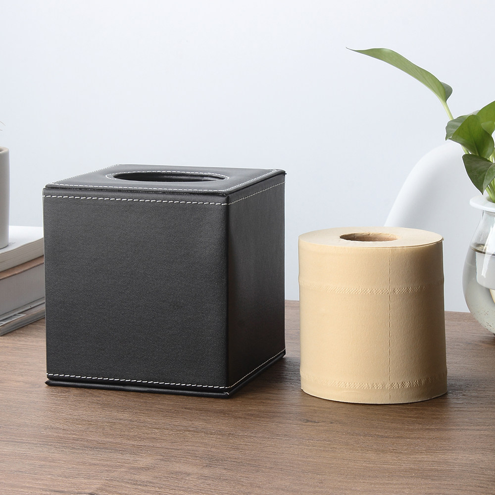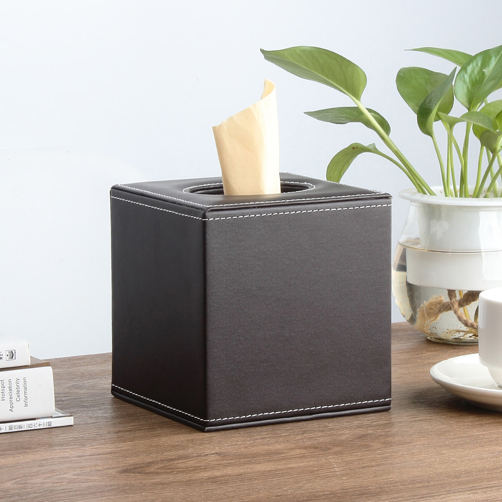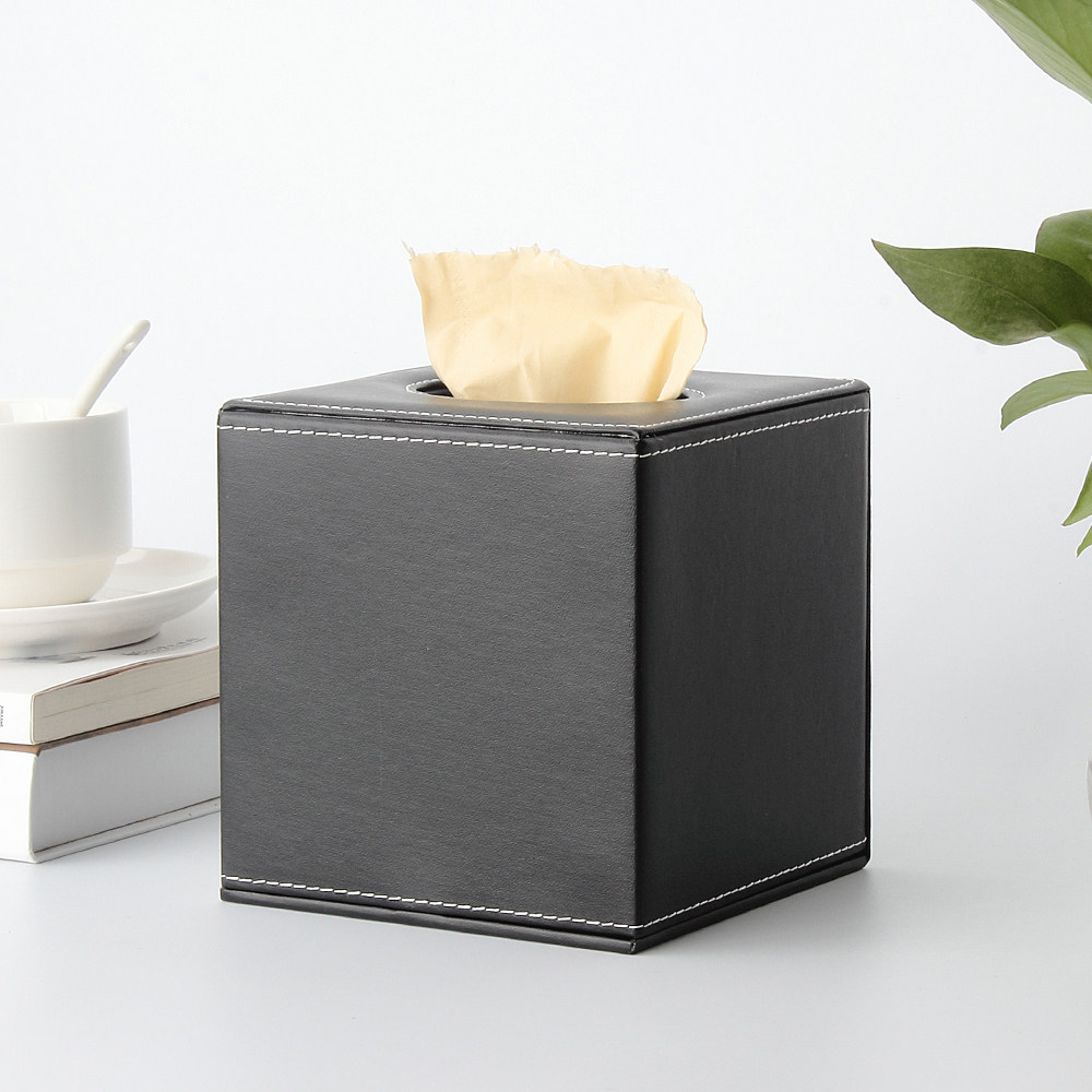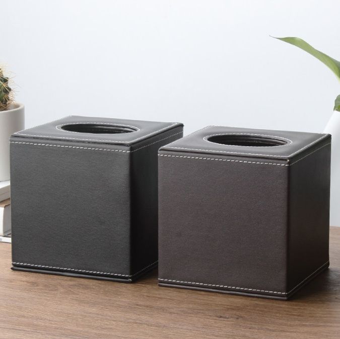 高級感漂うレザー素材を使用したキューブ型のティッシュケースです。